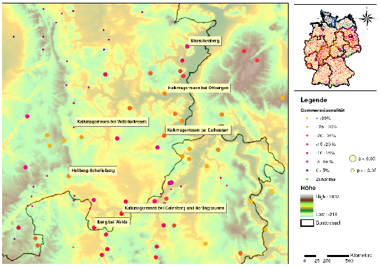 Im Sauerland, dass durch seinen Niederschlagsreichtum und relativ geringe Temperaturen gekennzeichnet ist, sind bereits innerhalb des im Projekt betrachteten Zeitraums von 20 Jahren Änderungen zu erkennen.