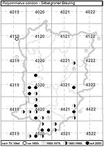 Besiedlung des Ebbegebirges (Märkischer Kreis) durch den wärmeliebenden Blutbär (Tyria jacobeae) im Zeitraum 1989 – 2002 (aus Brunzel et al. 2004).