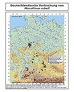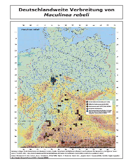 Verbreitung von M. rebeli in Deutschland. Die insgesamt sehr seltene Art erreicht im Weserbergland ihre nördliche Verbreitungsgrenze (aus Siewers 2009).
