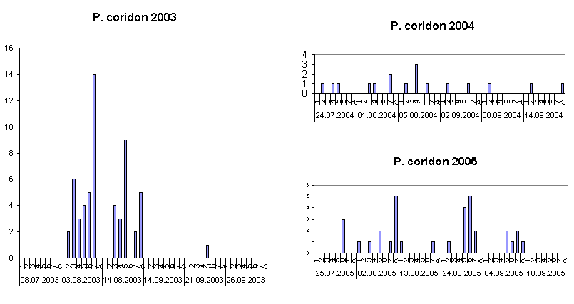Auch für die Zielarten im Weserbergland – Polyommatus coridon + Maculinea rebeli, die beide ihre nördliche Verbreitungsgrenze im UG erreichen – liegen bereits umfangreiche Erhebungsdaten vor, folgende Tendenzen zeichnen sich ab: